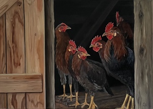 2018Schilderij is ingelijst in oud houten lijst totale afm. 41 x 45 cm