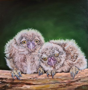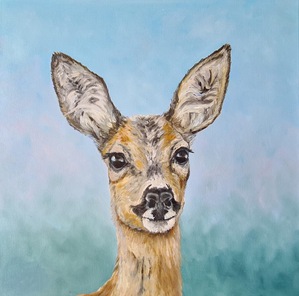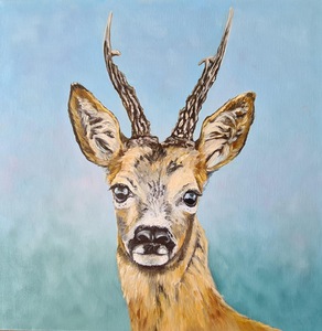 2019Schilderij is ingelijst in whitewash houten lijst. Totale afm. 54 x 44 cm