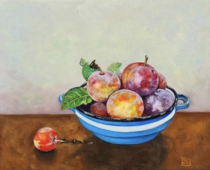 2021Schilderij is ingelijst in een witte baklijst, totale grootte 45 x 45 cm