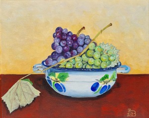2020Schilderij is ingelijst in een brede zwarte lijst met een goud randje, totale grootte 36 x 46 cm